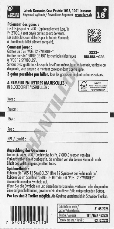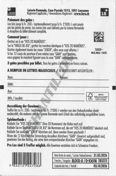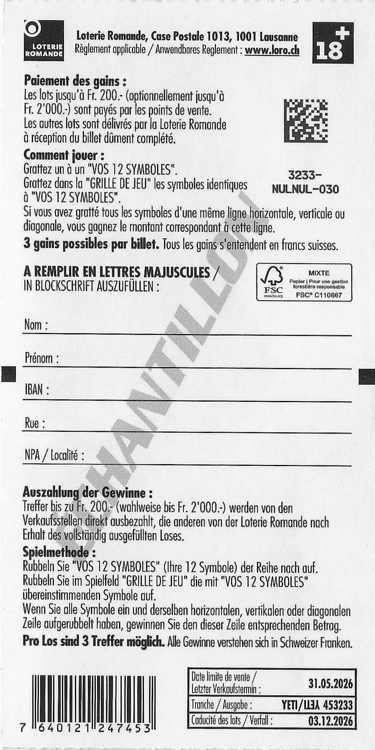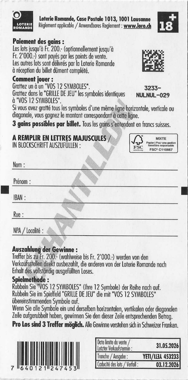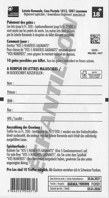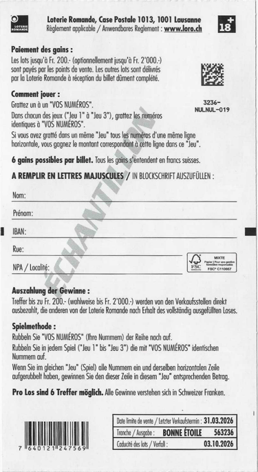 Série de 3 - ÉCHANTILLON |Tranche: 45 3233
