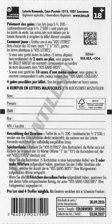 Serie de 4 |Série cumulative - ÉCHANTILLON |Tranche: 57 3245