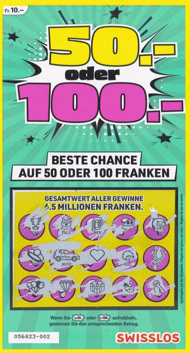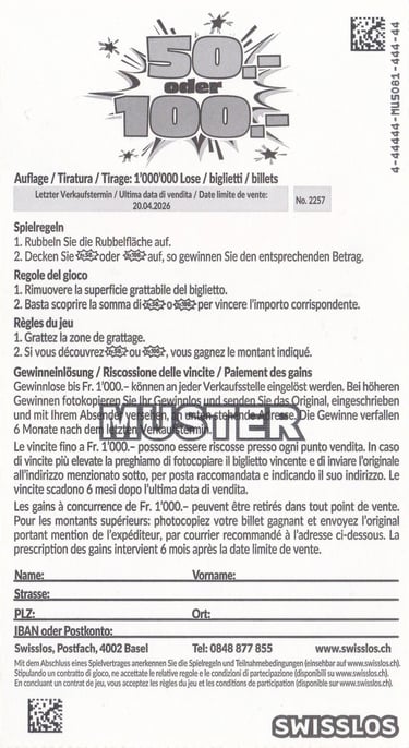 Neuwertig (Mint oder MT): Dies ist ein Sofortlot, das noch nie freigerubbelt wurde.