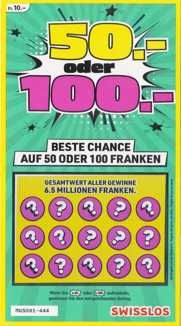 Ein Muster-/Ungültigkeitsticket ist ein Muster eines echten Lottoscheins.