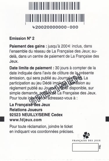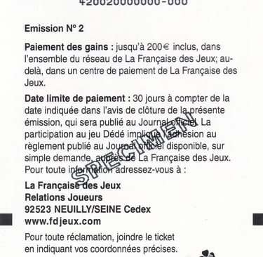 Bilhete nulo se descoberto (“NUL SI DÉCOUVERT”) [pode existir até 4 textos diferentes]