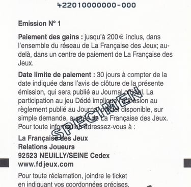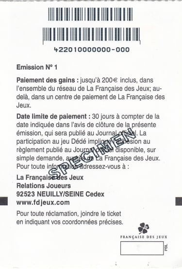 Bilhete nulo se descoberto (“NUL SI DÉCOUVERT”) [pode existir até 4 textos diferentes]