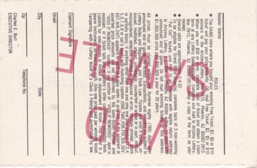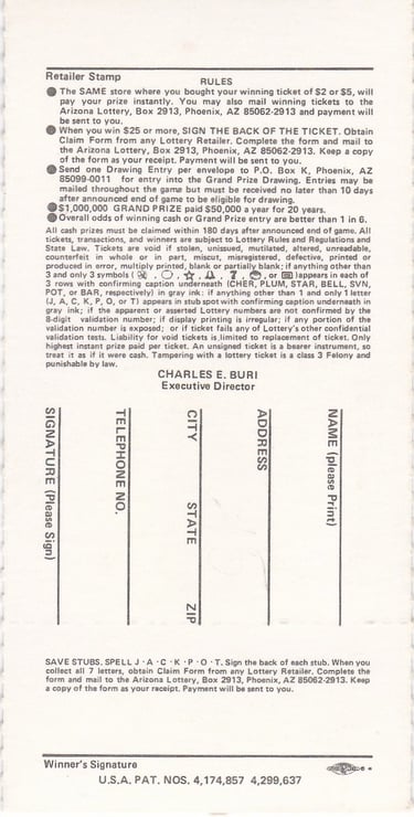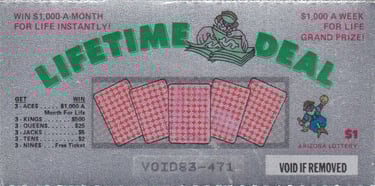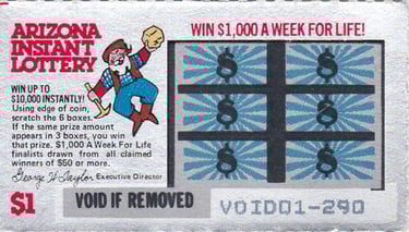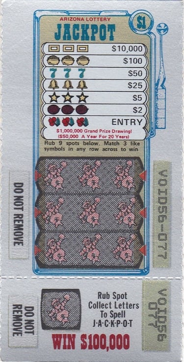 A primeira venda da Loteria do Arizona foi há 44 anos, em 1º de julho de 1981; o produto era um raspadinha instantâneo