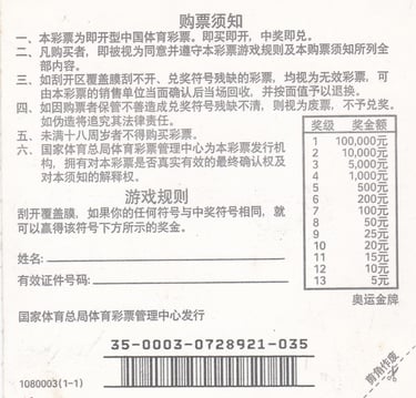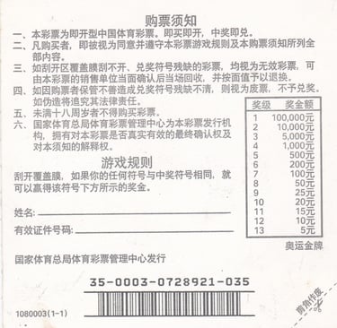 Entidade emissora: 中国体育彩票管理中心 (Centro de Gestão da Loteria Desportiva da China)
