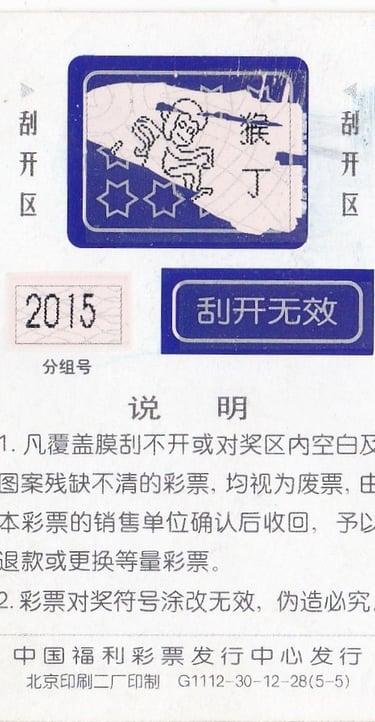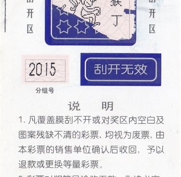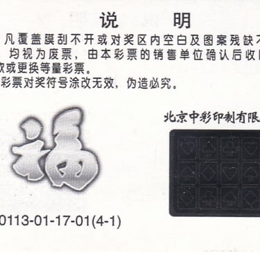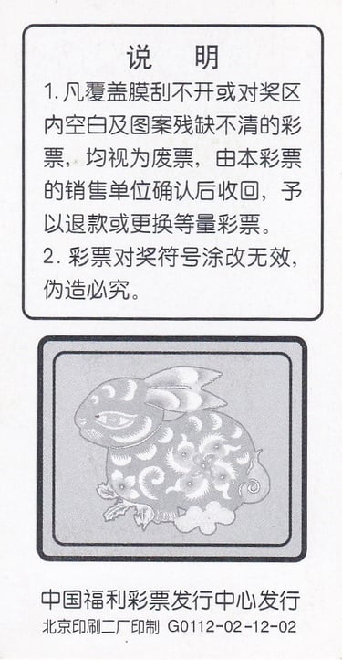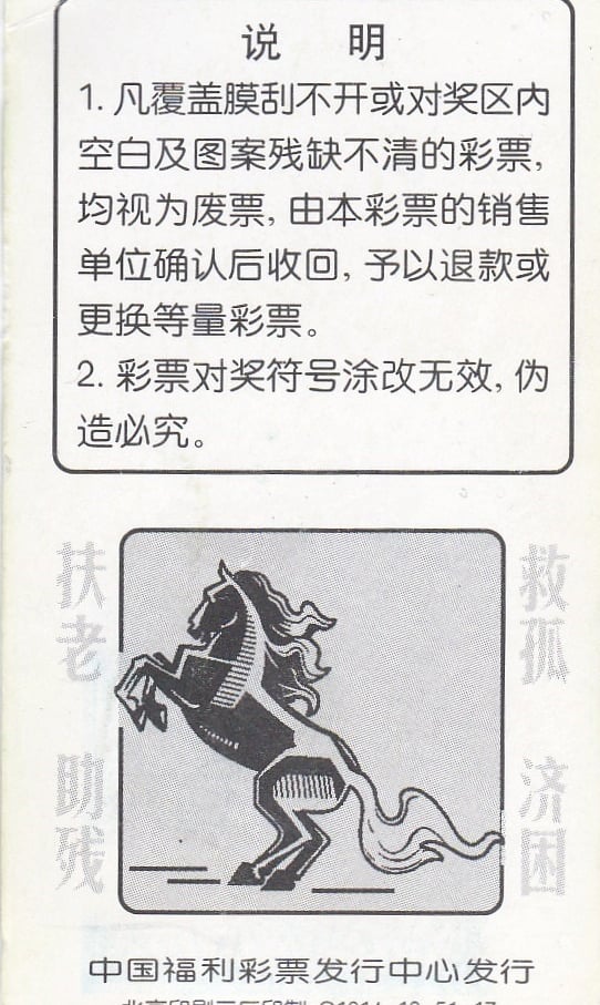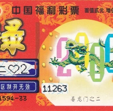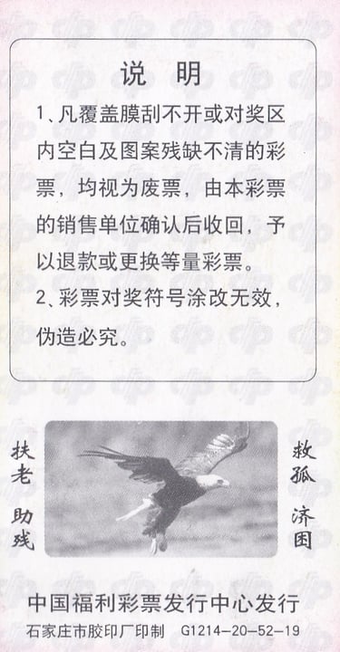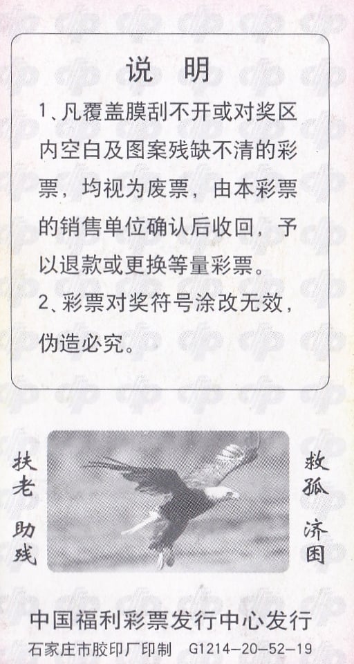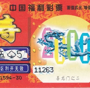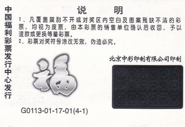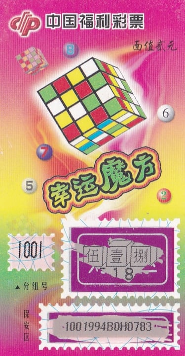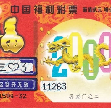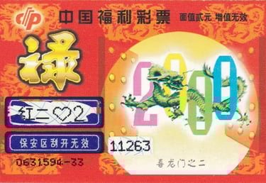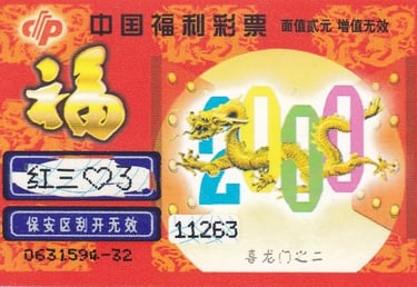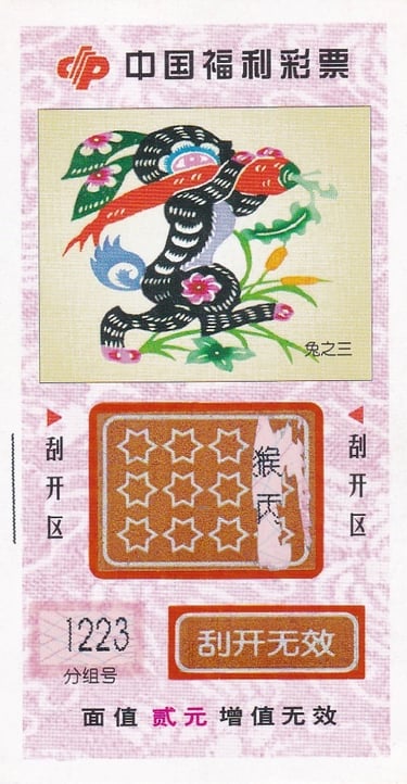 País: China Entidade emissora: 中国福利彩票发行中心 (Centro de Emissão da Loteria de Bem-Estar da China)