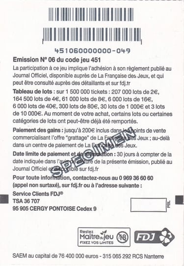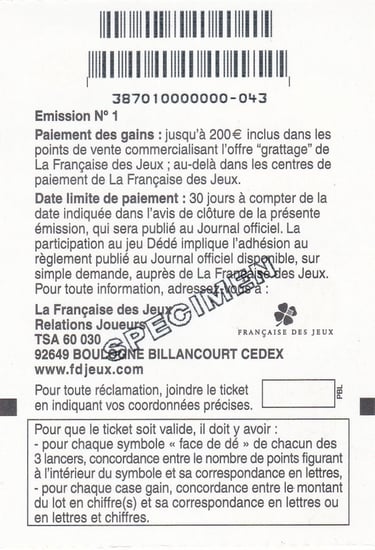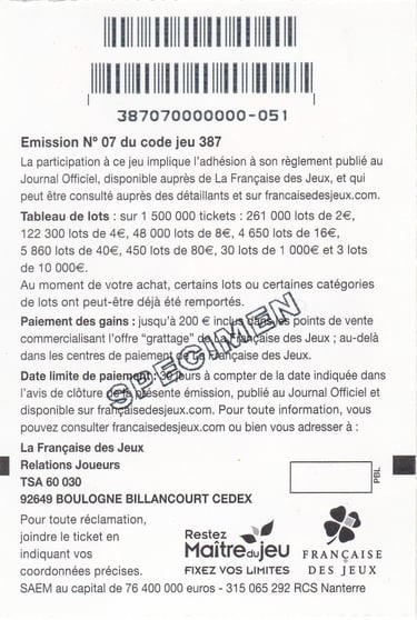 SÉRIE 2/4 SPECIMEN INCOMPLÈTE | 38704 - 26/02/2007