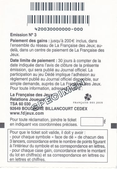 SÉRIE SPECIMEN COMPLÈTE 4 | 42003 - 29/03/2004 - ils existent trait bleu et trait rouge