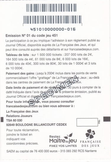 SÉRIE SPECIMEN COMPLÈTE 4 |45101 - 26/02/2009