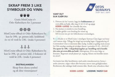 Os bilhetes que enviaste são raspadinhas promocionais da DFDS Seaways, oferecendo prêmios como: