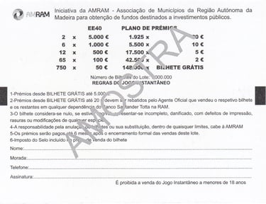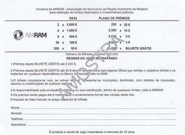 A exploração do Jogo Instantâneo pela AMRAM – Associação de Municípios da Região Autónoma da Madeira, data de 19 de dezembro de 1985, de acordo com as condições da licença de exploração aprovadas pelo Governo Regional da Madeira.