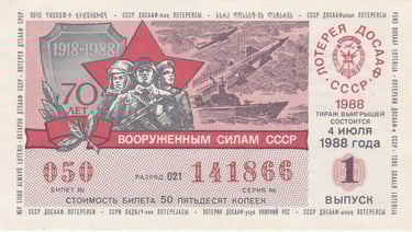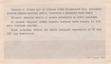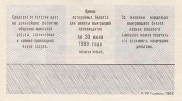 DOSAAF USSR Lottery (1990) Organizing Institution: DOSAAF — Voluntary Society for Cooperation with the Army, Aviation, and Navy of the USSR