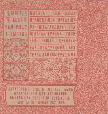 Validade para resgate de prémios: Até 30 de junho de 1992 (Bilhetes válidos apenas no território da RSS da Bielorrússia)