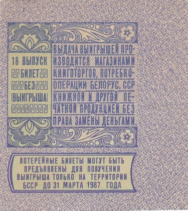 Validade para resgate de prémios: Até 31 de março de 1987 (Bilhetes válidos apenas no território da RSS da Bielorrússia)