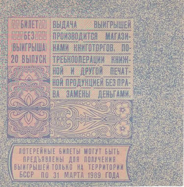 Validade para resgate de prémios: Até 31 de março de 1989 (Bilhetes válidos apenas no território da RSS da Bielorrússia)