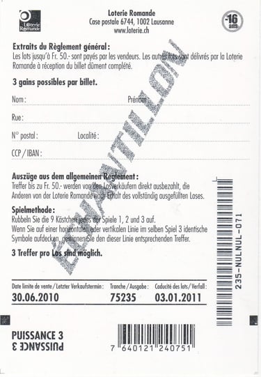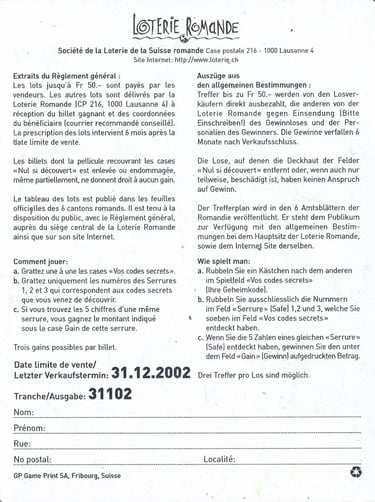 Founded in 1986 in Fribourg, GP Game Print SA specialized in printing lottery tickets and scratch games, integrating mathematical systems applied to gaming. Dissolved in 2018, it remains a testament to Swiss precision and the international evolution of lottery printers.