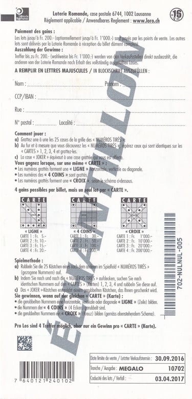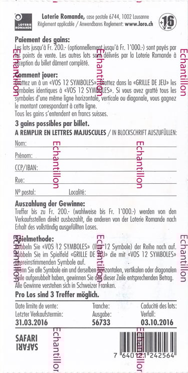 SERIE DE 3 | ÉCHANTILLON |Tranche: 02 812