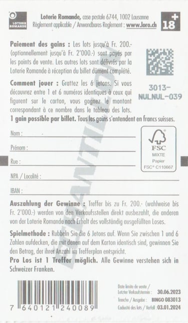 ÉCHANTILLON |Tranche: 08 3013