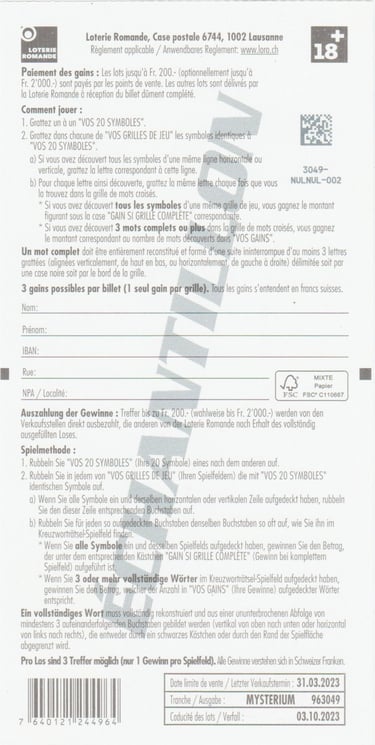 ÉCHANTILLON |Tranche: 19 3074