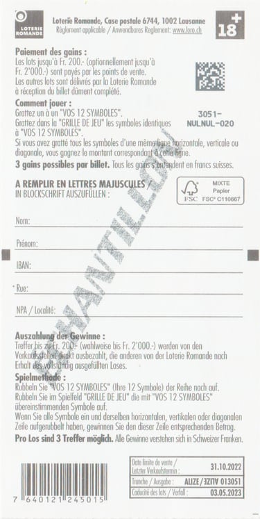 ÉCHANTILLON |Tranche: 01 3051