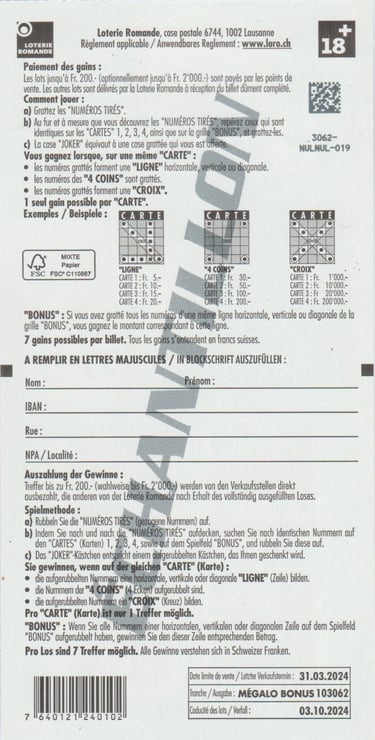 ÉCHANTILLON |Tranche: 10 3062