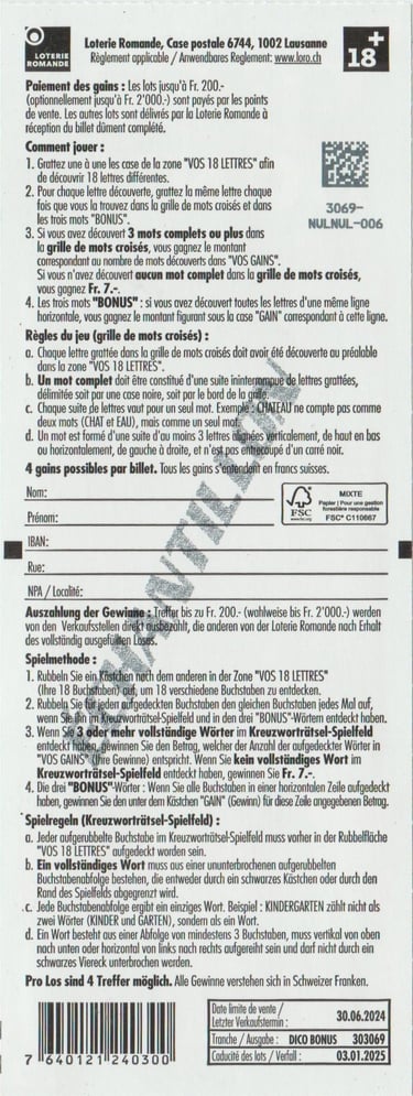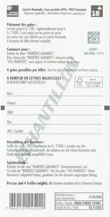 ÉCHANTILLON |Tranche: 18 3073