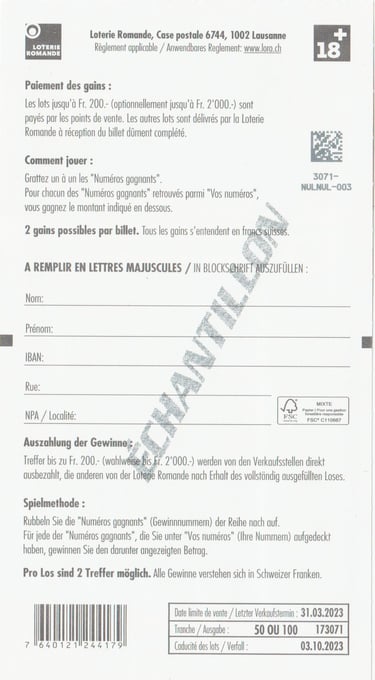 ÉCHANTILLON |Tranche: 17 3071