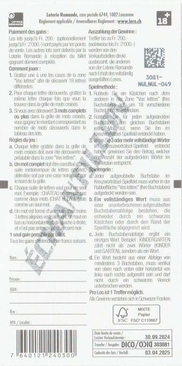 ÉCHANTILLON |Tranche: 30 3081