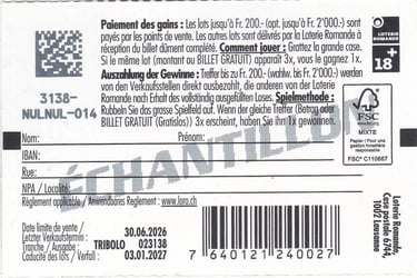 Tribolo fait partie de la grande famille des jeux à gratter de la Loterie Romande et concerne tous les joueurs.
