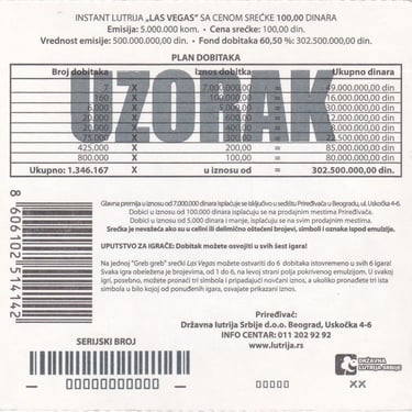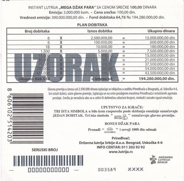 Emissor | Issuer | Émetteur Državna Lutrija Srbije · Direkcija za igre na sreću (State Lottery of Serbia · Directorate for Games of Chance)