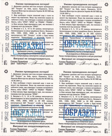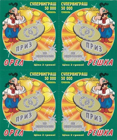 A ZAT “PATRIOT” foi uma das principais operadoras de loterias instantâneas na Ucrânia no início dos anos 2000, com forte presença em Kyiv e autorização estatal. Este exemplar representa tanto o lado lúdico quanto o institucional da loteria ucraniana.